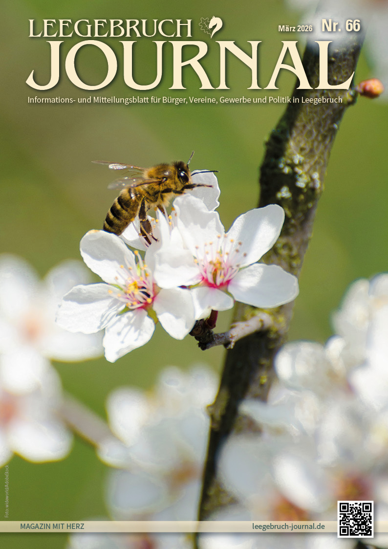 Hinweis: Wir möchten Sie aus gegebenen Anlass darauf aufmerksam machen, dass auch beim kostenlos verteilten und in ehrenamtlicher Arbeit erstellten LEEGEBRUCH JOURNAL die Urheberrechte bei den Herausgebern liegen. Jegliches Kopieren, digital oder analog, erfordert die Zustimmung der Herausgeber und eine Quellenangabe. Insbesondere der Download und das Einbinden in eigene Webseiten oder in sozialen Medien verstößt gegen das Urheber- und Nutzungsrecht und ist unsererseits nicht erwünscht. Gerne dürfen Sie aber von ihrer Seite auf unsere Inhalte verlinken.